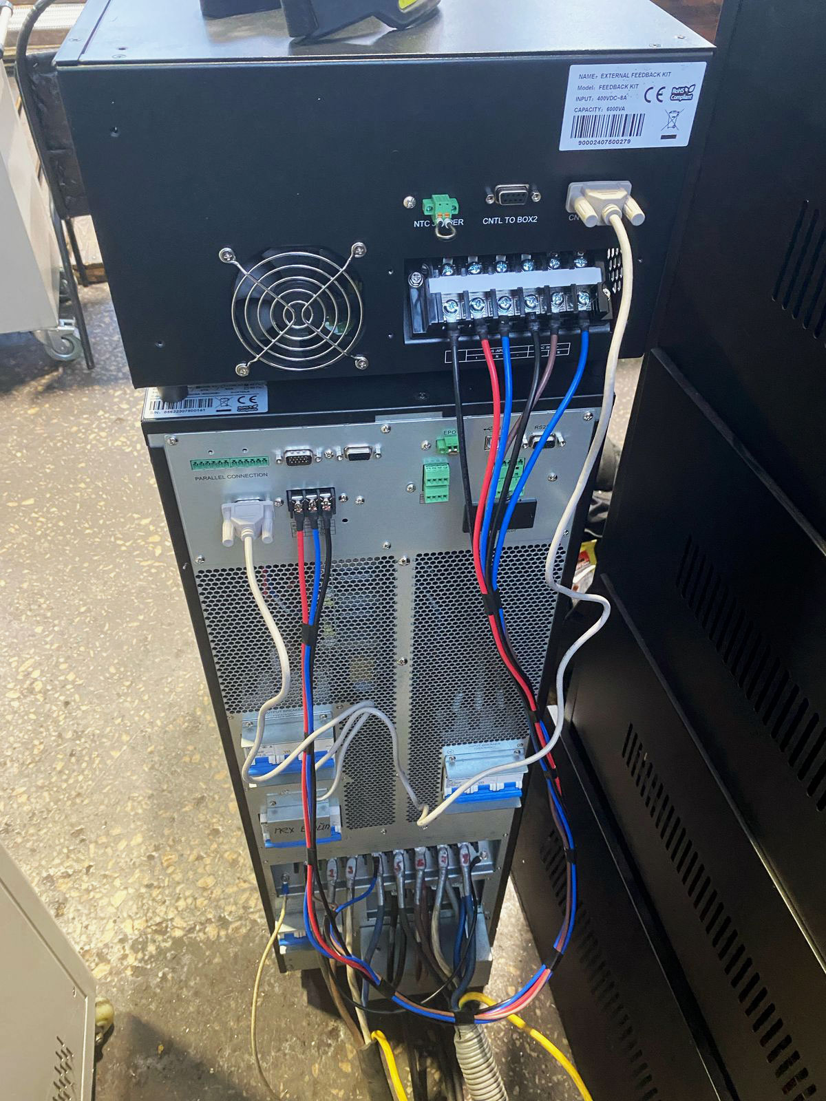 Инженерами компании АЛАС выполнен монтаж оборудования на объекте заказчика. Блок БПРМ подключен в разрыв между выходом ИБП и нагрузкой (станком). Проведено тестирование системы бесперебойного питания во всех режимах эксплуатации, включая режимы возникновения рекуперативной энергии. Все режимы работы признаны штатными.