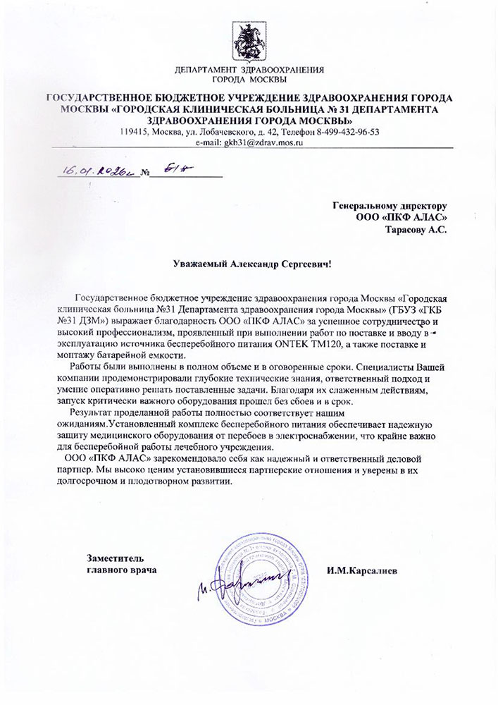 Модернизация системы бесперебойного питания ГБУЗ "ГКБ №31 ДЗМ"