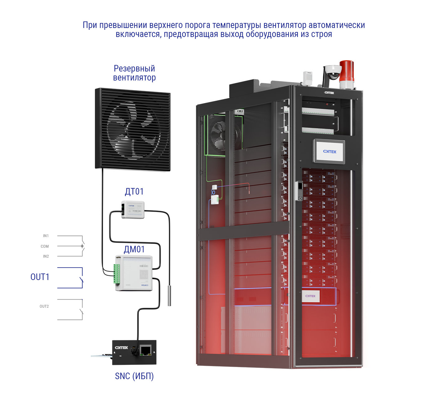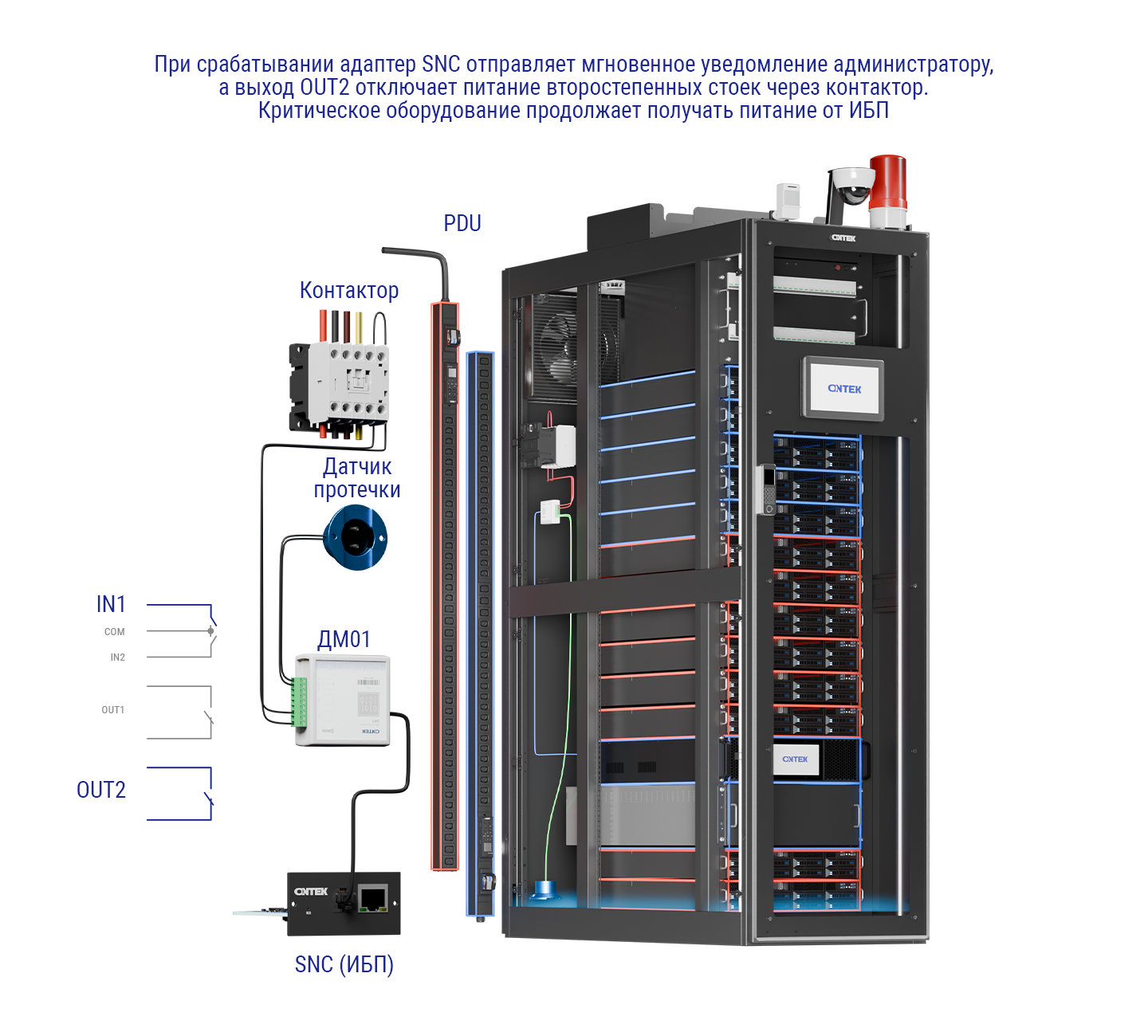 Компания ONTEK завершила разработку и приступила к производству интеллектуальных модулей ввода-вывода ДМ01. Это универсальное устройство расширения, предназначенное для совместной работы с SNMP-адаптерами ONTEK SNC-S2 и SNC-P2. Модуль ДМ01 добавляет в систему мониторинга два дискретных входа для подключения датчиков с "сухим контактом" (например, протечки воды, открытия двери, дыма и вибрации) и два релейных выхода для управления исполнительными устройствами (например, вентиляцией, обогревом, сигнализацией, распределением питания нагрузки).