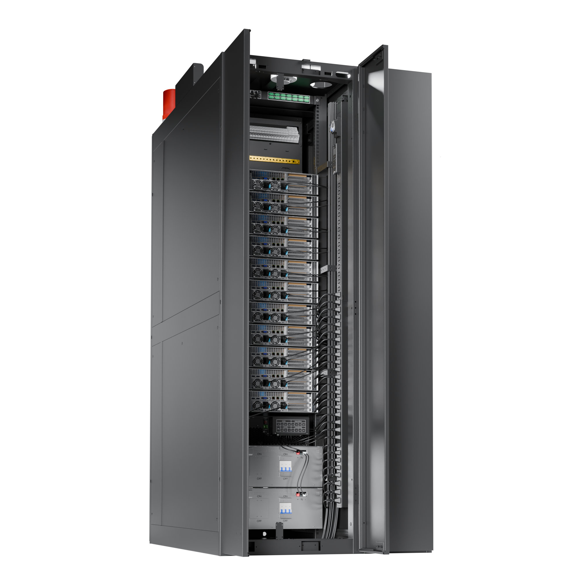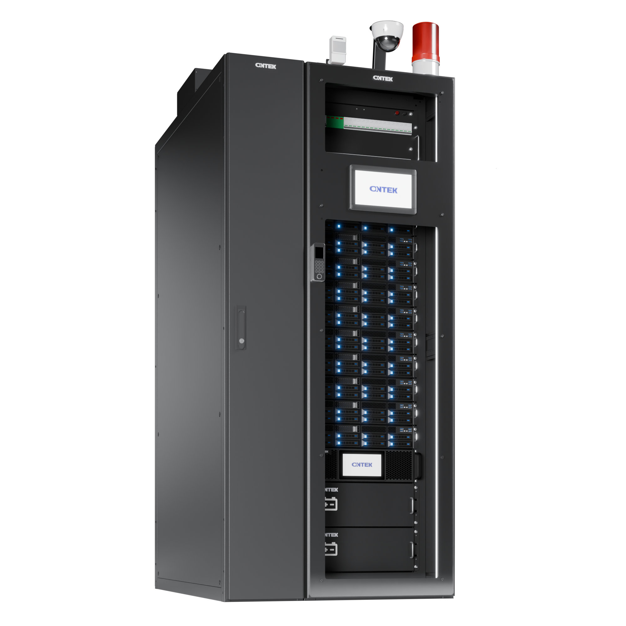 ONTEK НаноГрид - это полноценный микро-ЦОД, предустановленный в стандартном 19‑дюймовом шкафу, с одним кондиционером, который может быть установлен слева или справа
