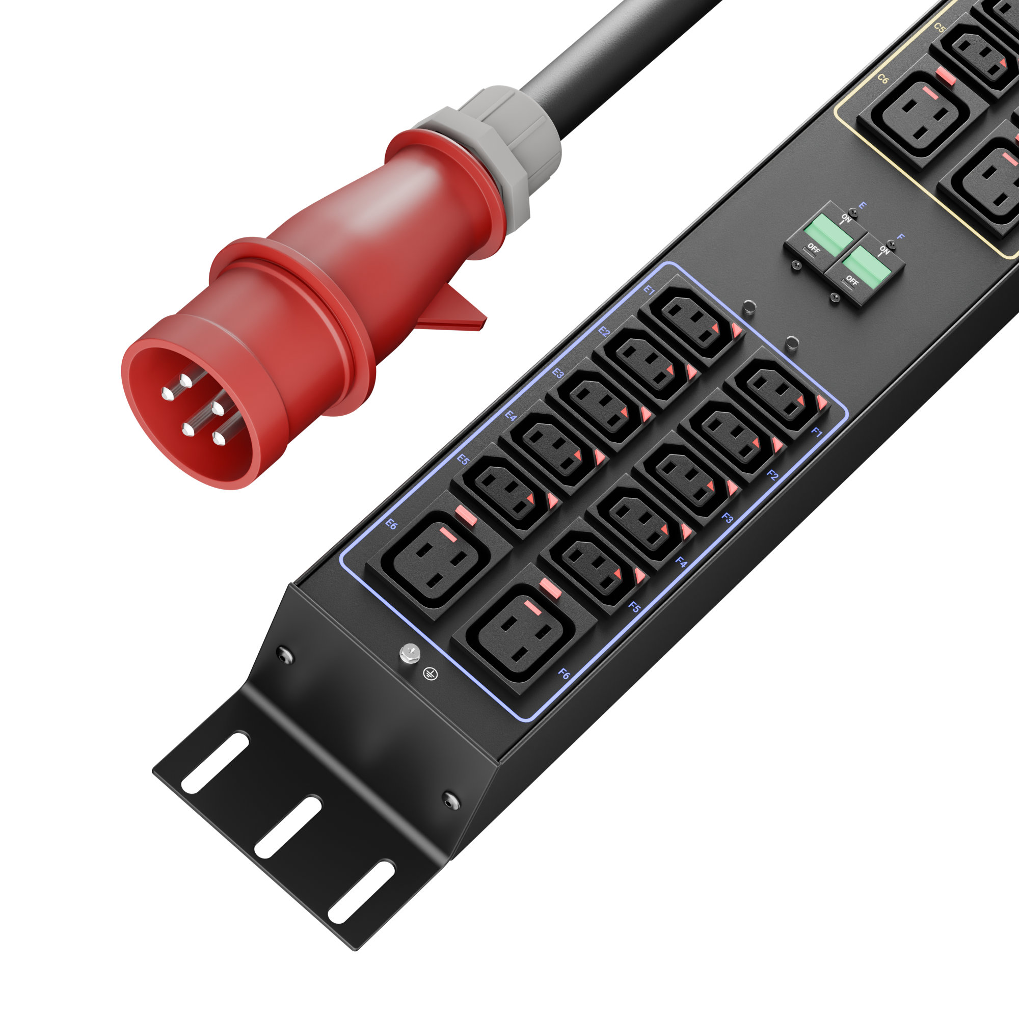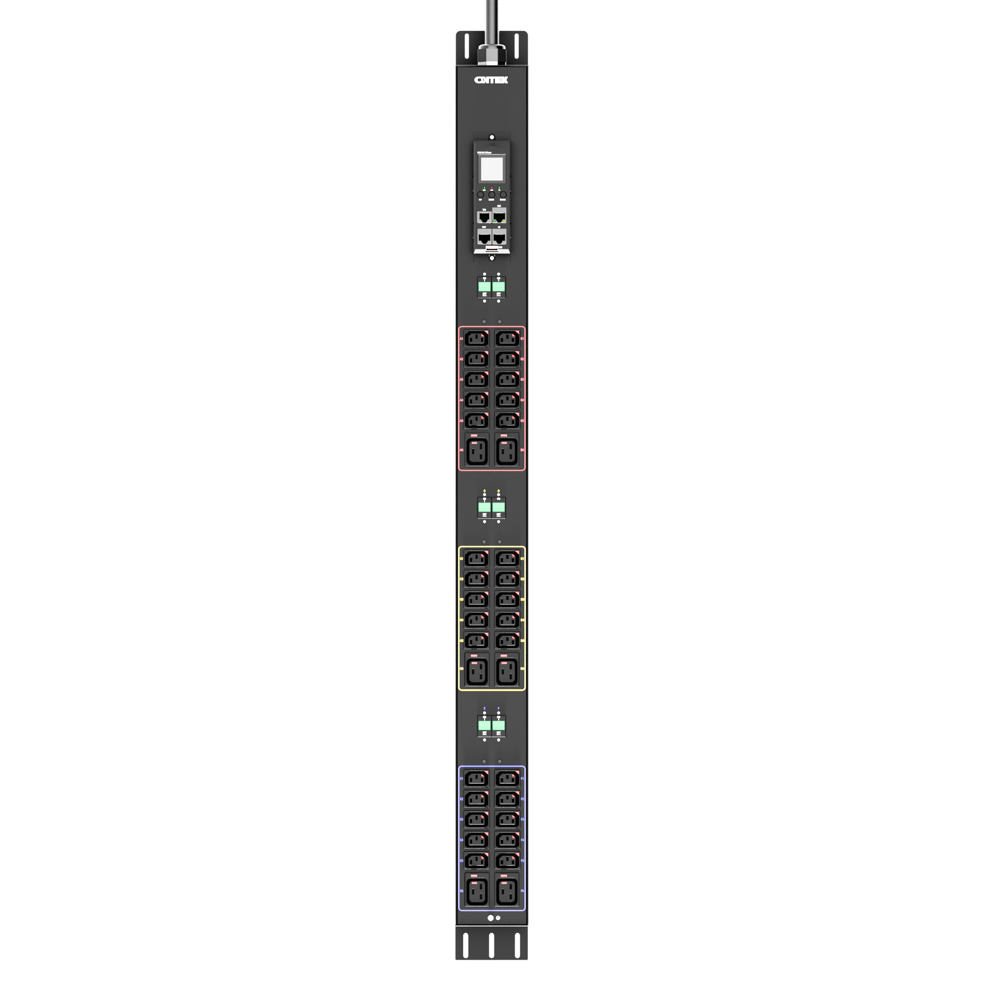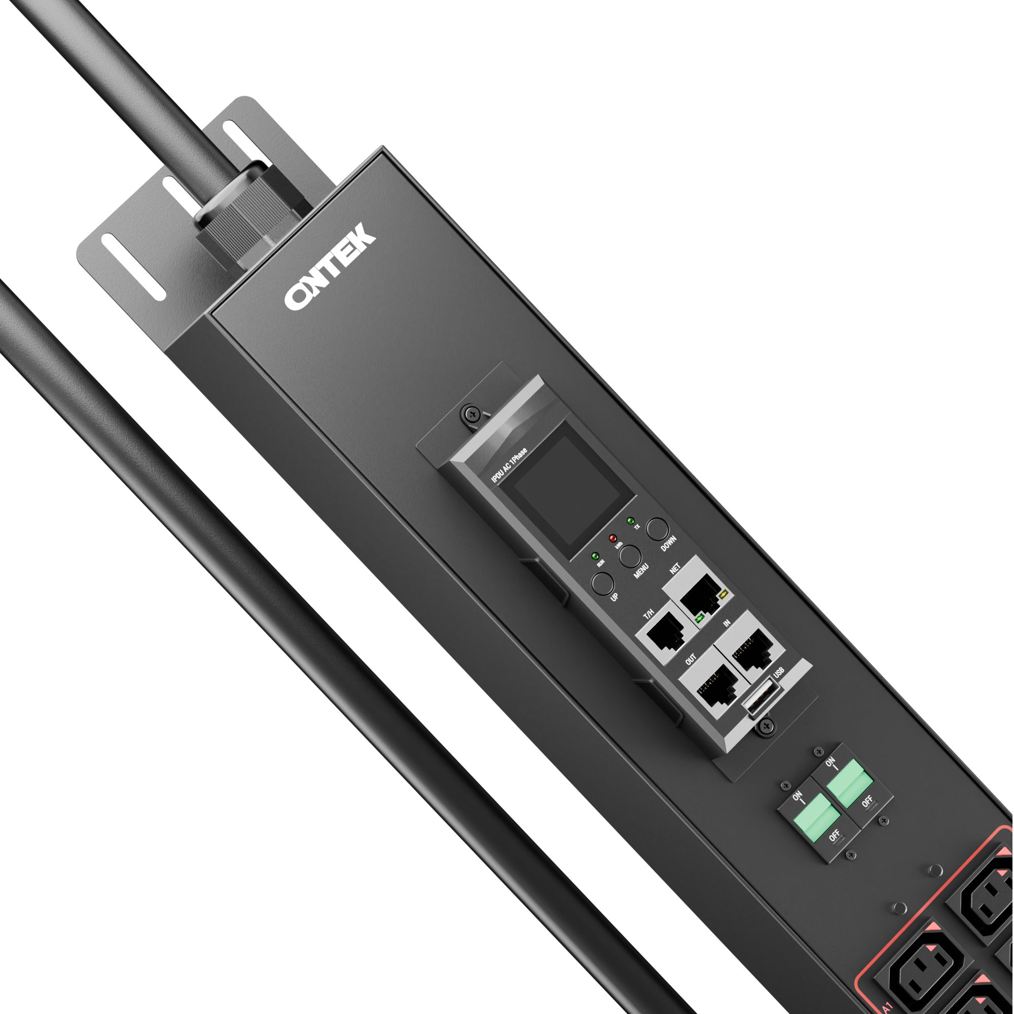 Панель распределения ONTEK PDU Metered Input ОМРВ4 вертикальная c функцией удаленного мониторинга, 32A/3ф, с мини-выключателем 16А 6шт, выход - C13 x 30 шт. / C19 x 6 шт., IEC60309 5p