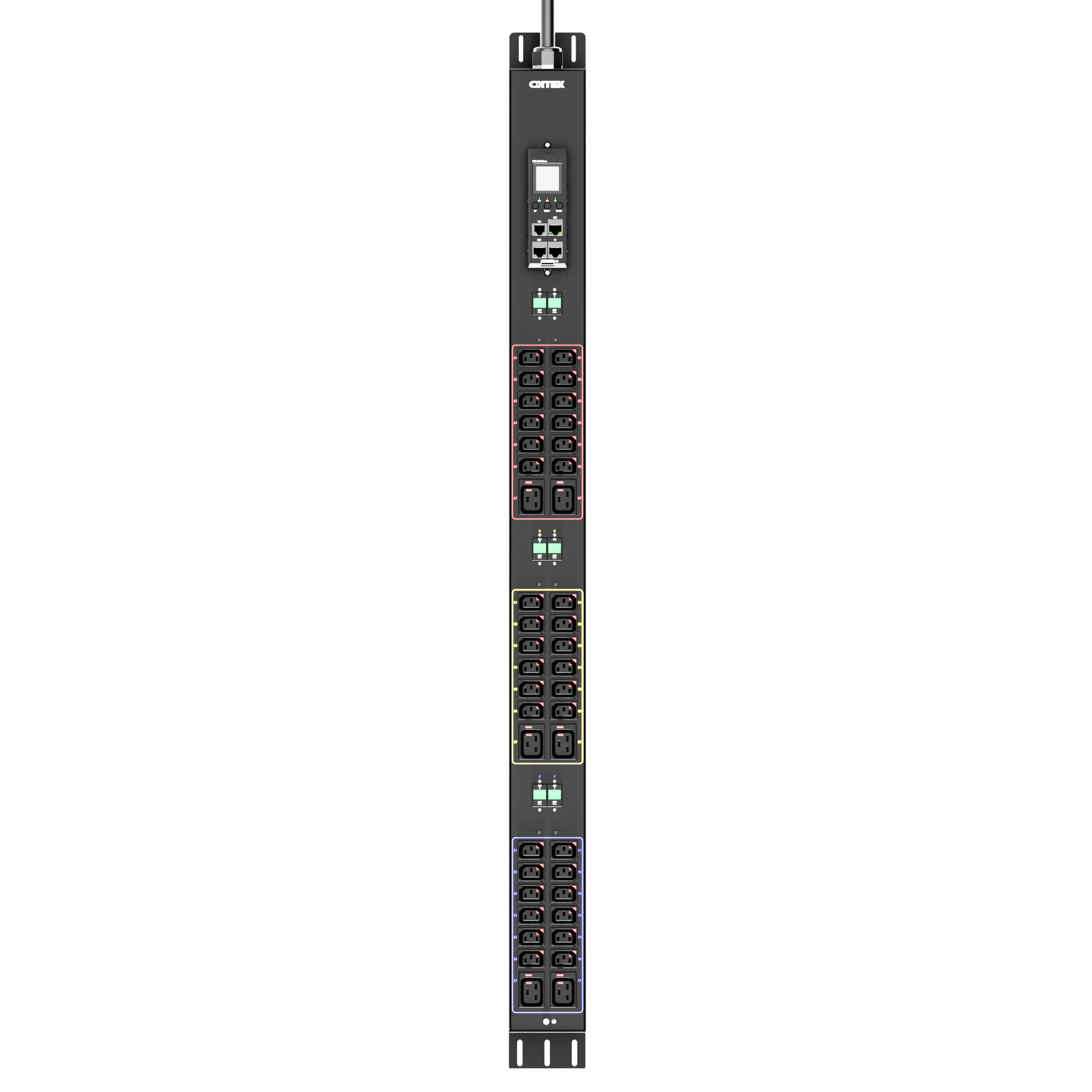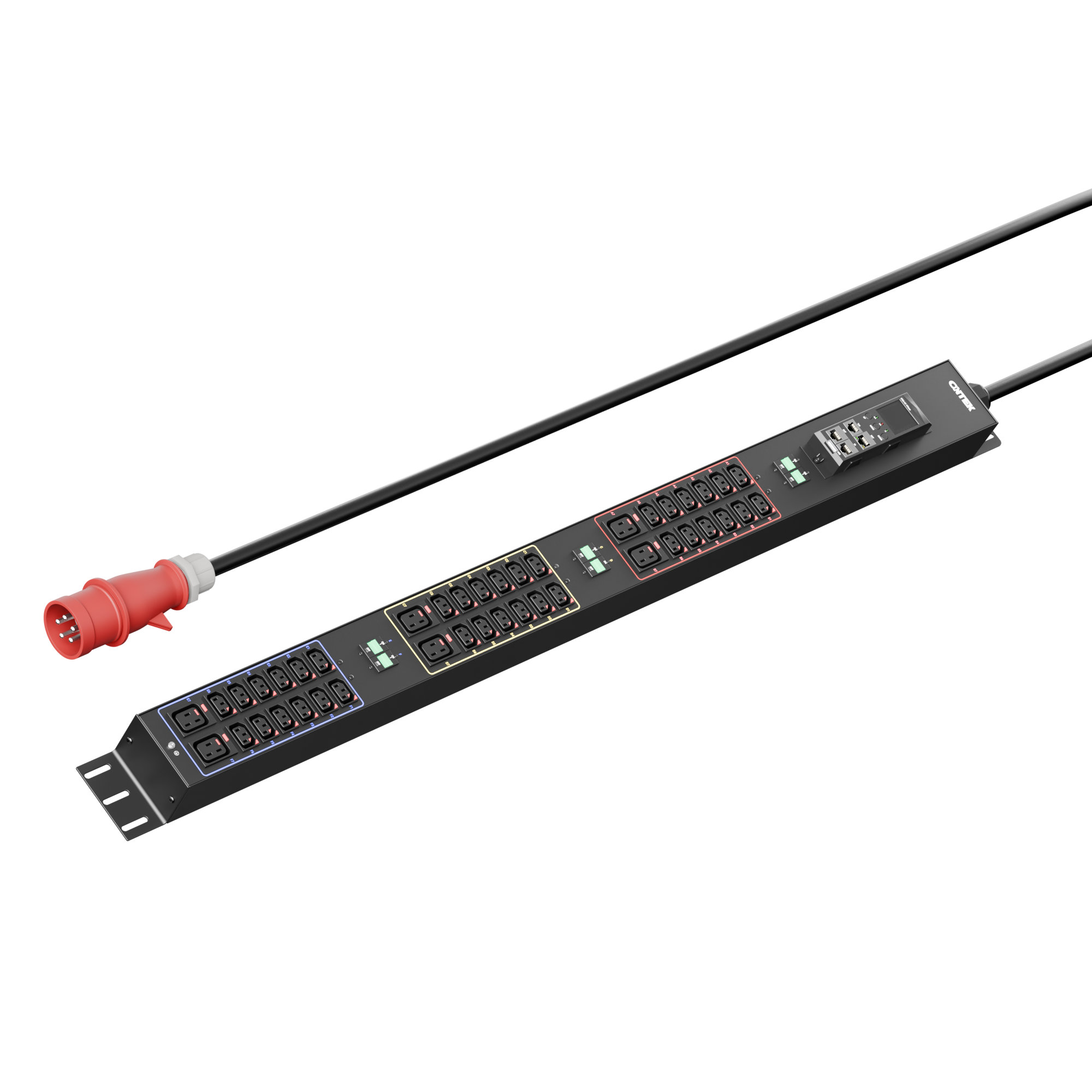 Панель распределения ONTEK PDU Metered Input ОМРВ5 вертикальная c функцией удаленного мониторинга, 32A/3ф, с мини-выключателем 16А 6шт, выход - C13 x 36 шт. / C19 x 6 шт., IEC60309 5p